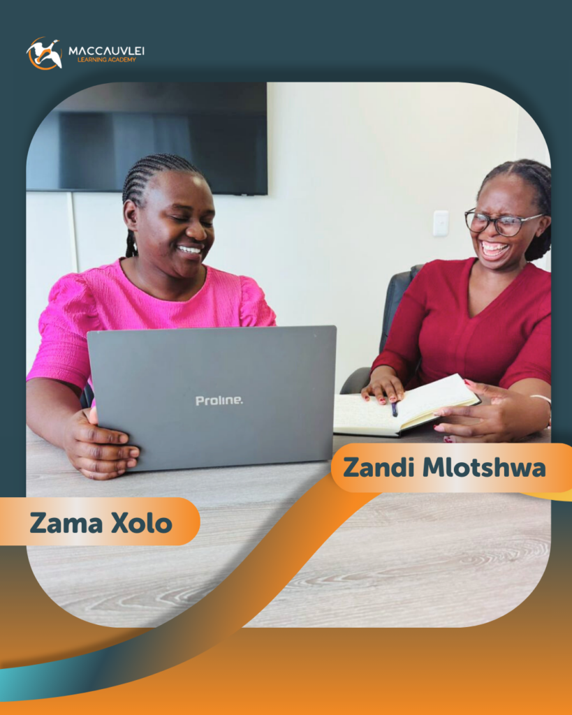 Zama Xolo and Zandi Mlotshwa sharing insights during their facilitator internship journey at Maccauvlei Learning Academy.